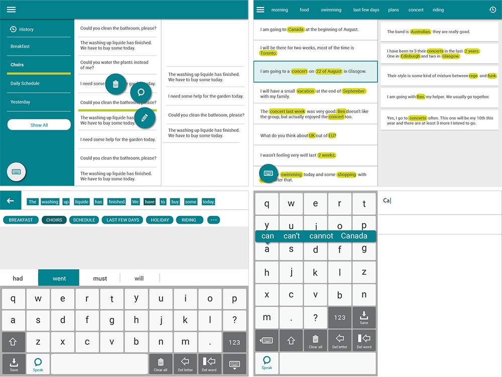 The project’s objectives were to prototype, design and evaluate an intuitive, efficient and easy-to-use interface for a context-aware AAC mobile application. The ultimate aim was to minimize the possibilities of technology abandonment.