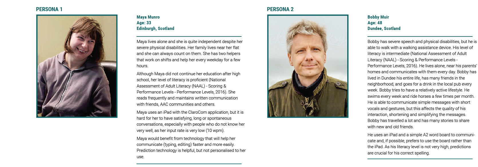 The project’s personas were based on real AAC users and many of their characteristics were inspired by some of the project’s participants.