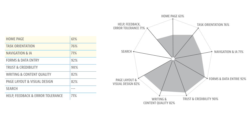 This phase began with research and analysis of the main competitors and other e-commerce websites known for their excellent customer experience. The research was followed by a heuristic evaluation conducted by me and one more usability expert. To understand what are the issues and what causes them, I worked together with the SEO team. The purpose was to combine the collected from the research and evaluation findings with data from Google Analytics, which could help us to reveal patterns and explain existing issues. The result of the initial research and analysis was a report showing problems and giving recommendations for improvement and implementation in the new online shops.
